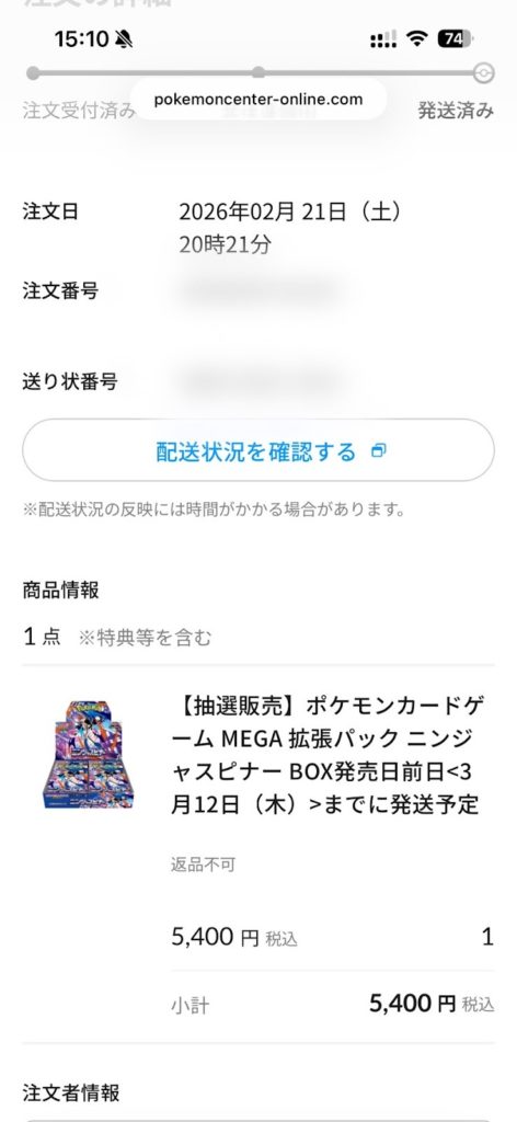 下の写真は一例ですが、私が実際に買った商品の取引画面です。