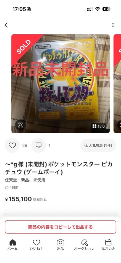 2025年9月に47,000円で購入した1枚のピカチュウが半年で倍になりました。